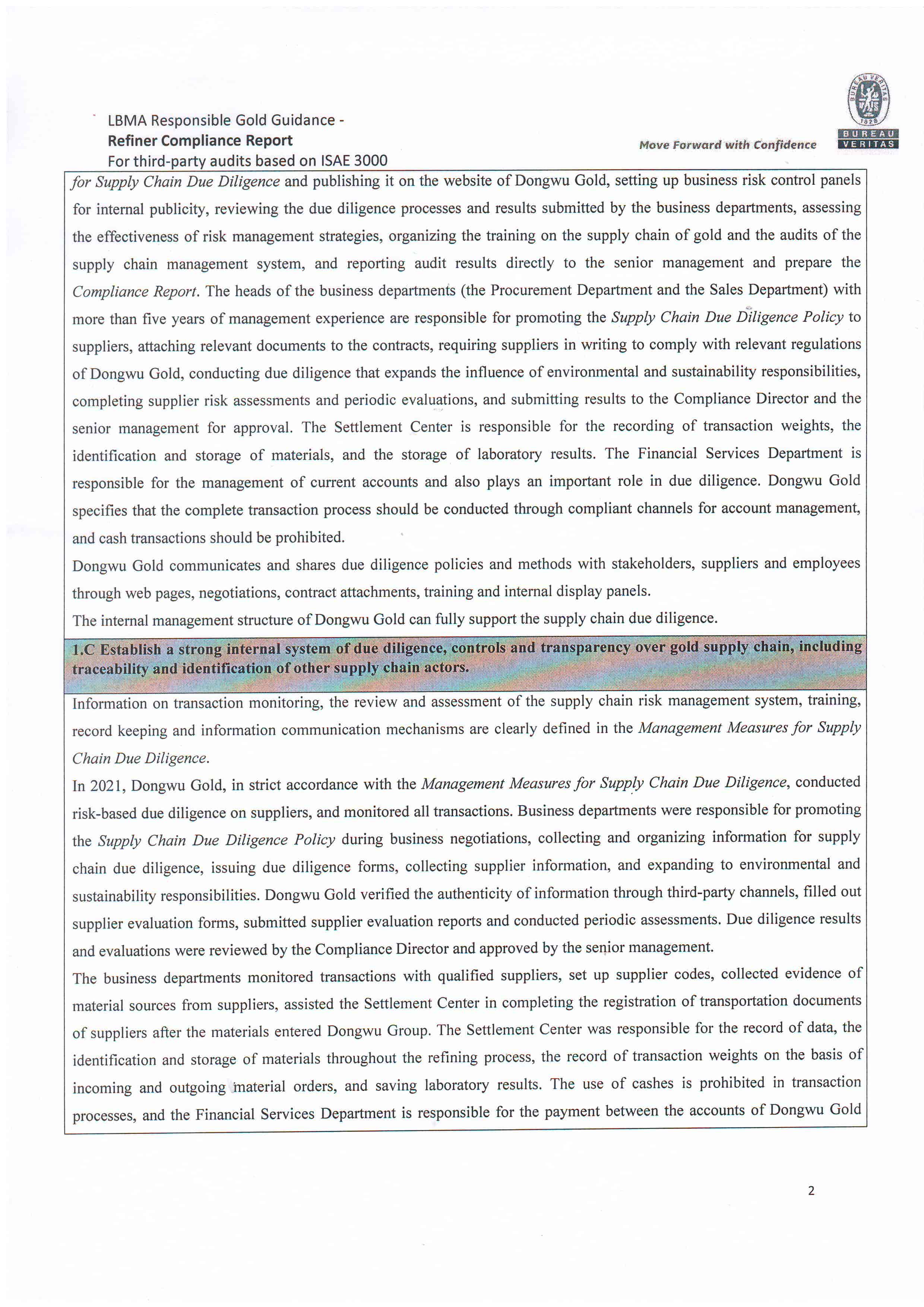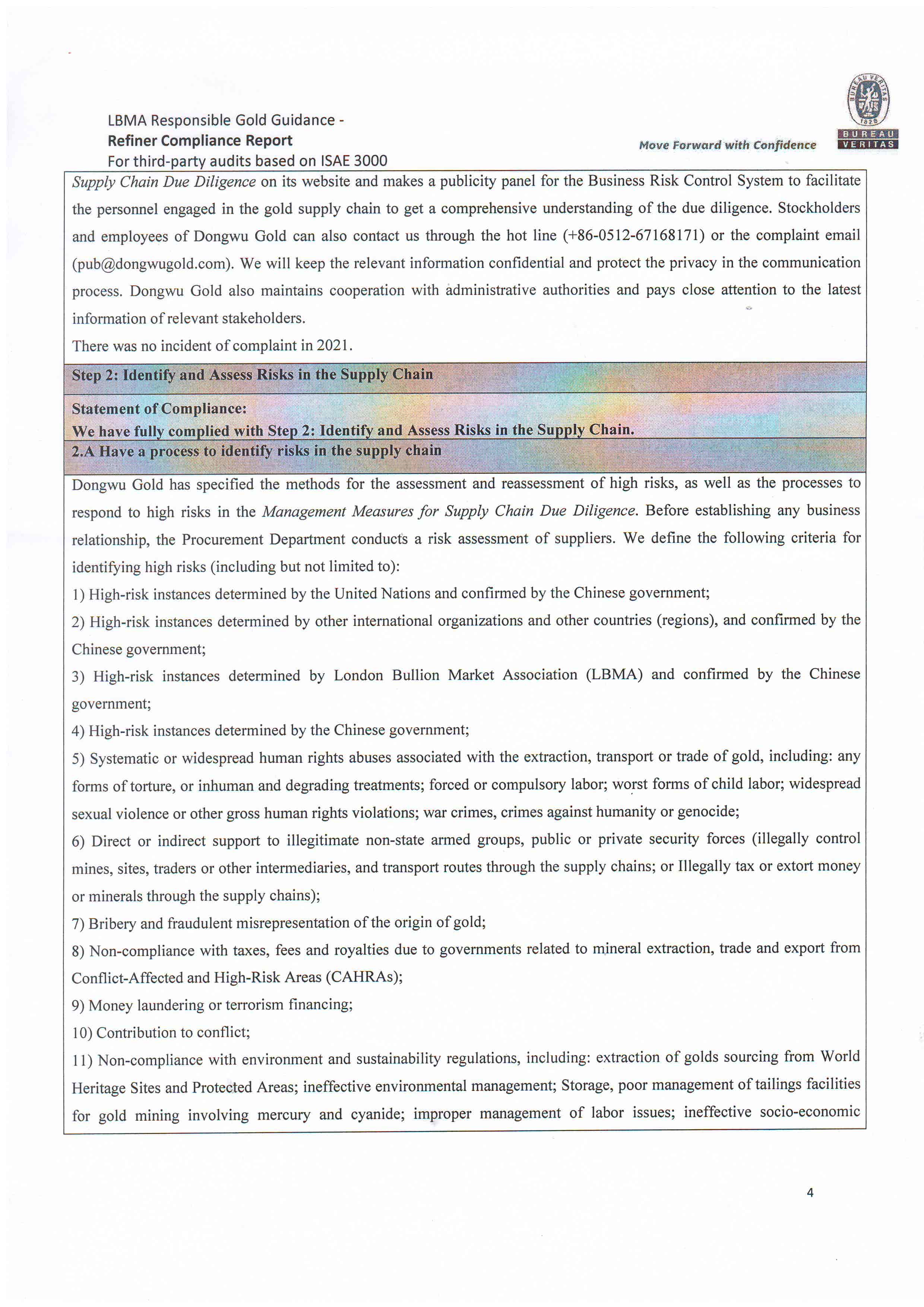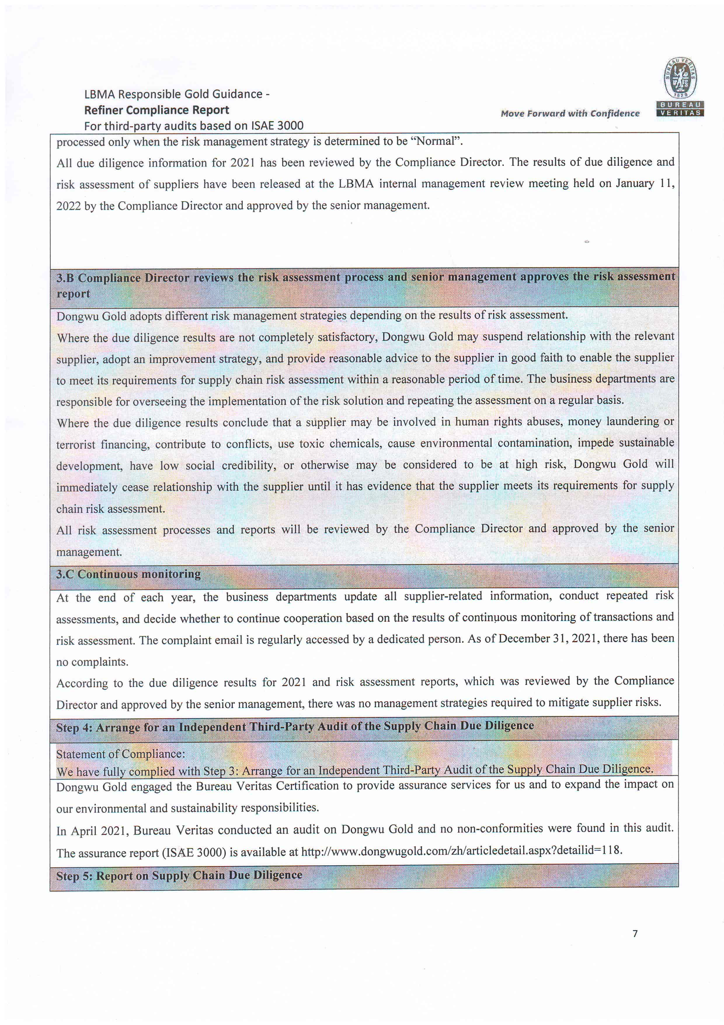 Dongwu Gold Refiner Compliance Report 2021