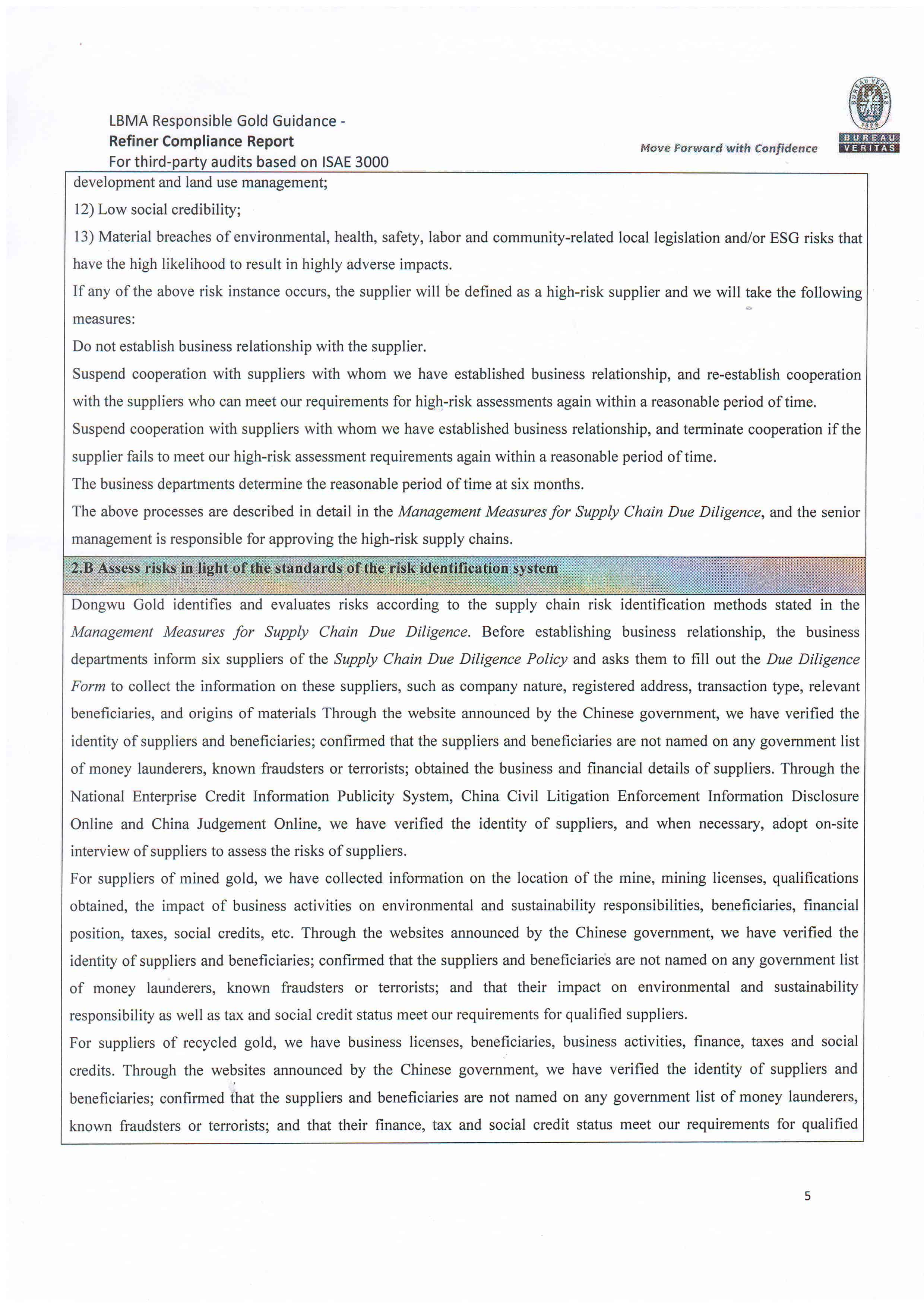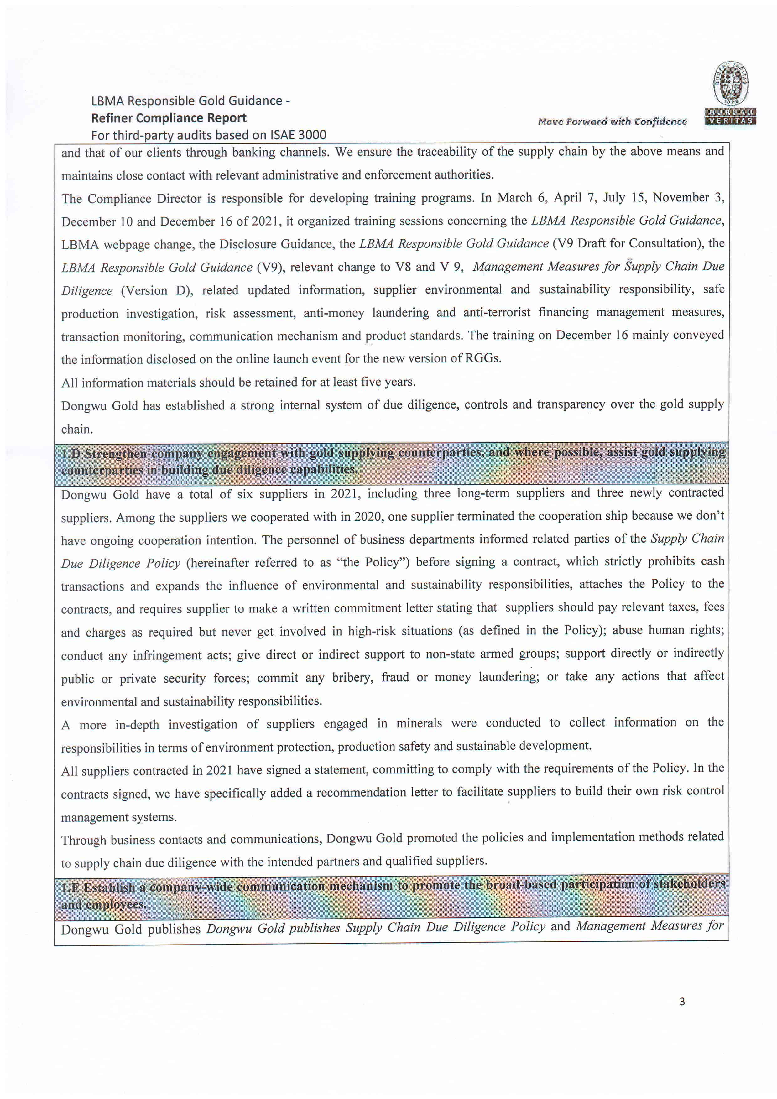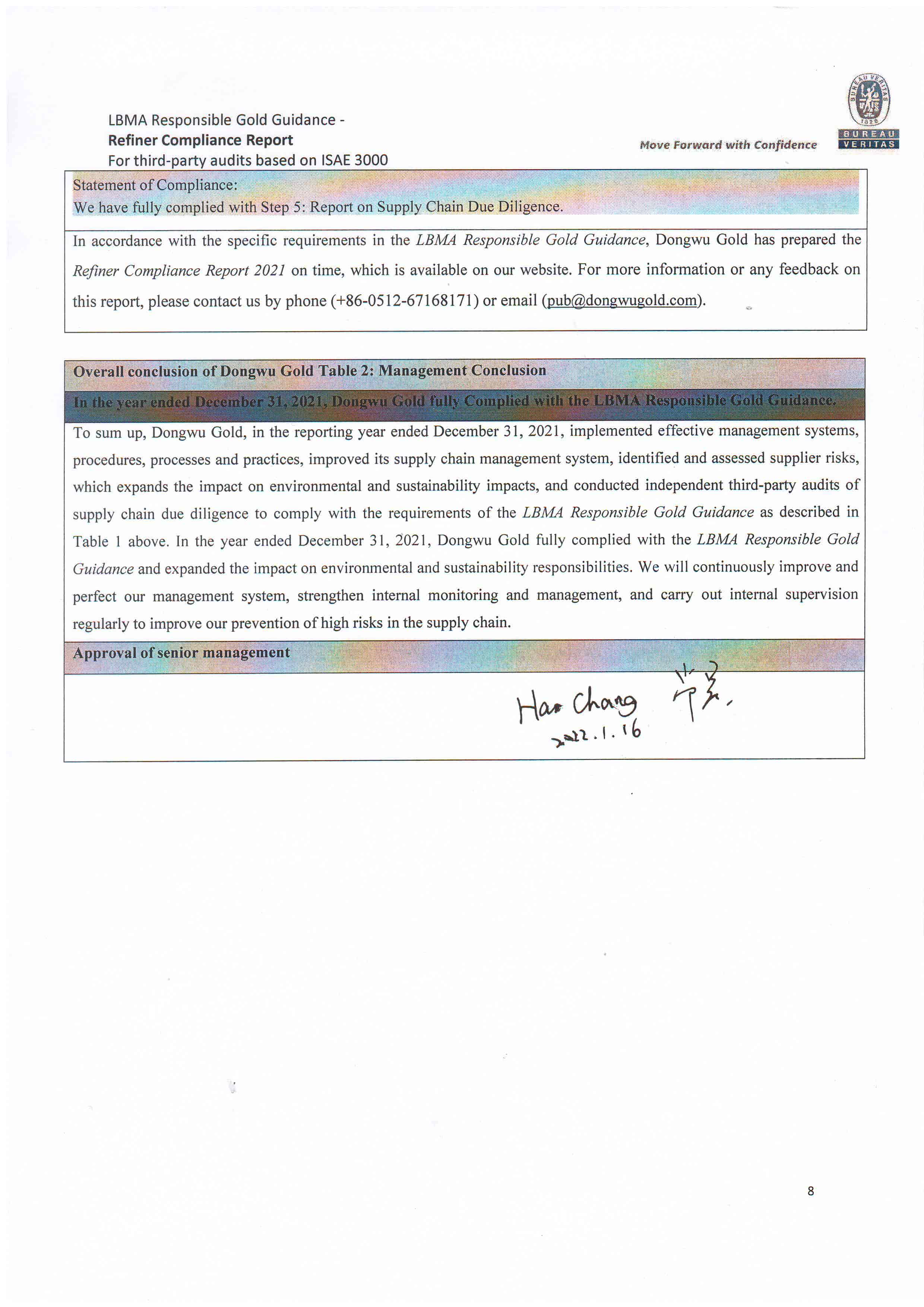 Dongwu Gold Refiner Compliance Report 2021